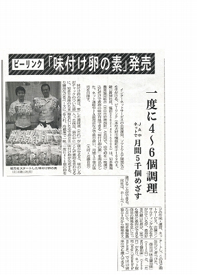 平成22年11月27日より販売を開始した「たまご屋さんのつくった味付け卵の素」が平成22年11月30日発行の中部経済新聞に掲載されましたので、ご紹介します。